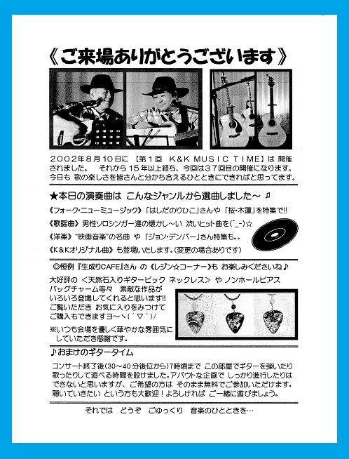 今回のセットリストなどは こう太のブログや、生成りCAFEさんのブログで、とっくにご覧いただいてるのでは。。と思いますが…